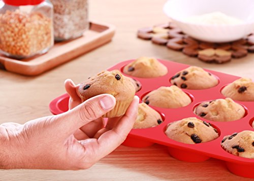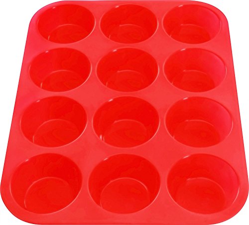 Silicon Muffin Tray - 12 Moulds / Cups - Non-Stick - Baking Pans - BPA Free - Ideal for Cupcakes, Muffins and Mini Cakes - by Utopia Home