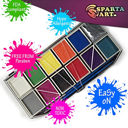 Sparta Art face paint kit for Children and Adults - the perfect way to have a fun during parties or just to have fun with your kids at home. Our paints are great for beginners and for professional make-up artists looking to create the unique designs for any kind of event. Your children will remember their colorful birthday party or Halloween event for years to come. Our set of