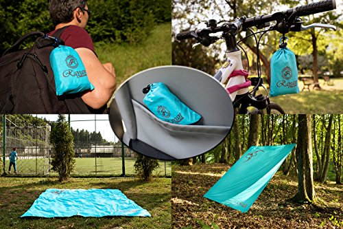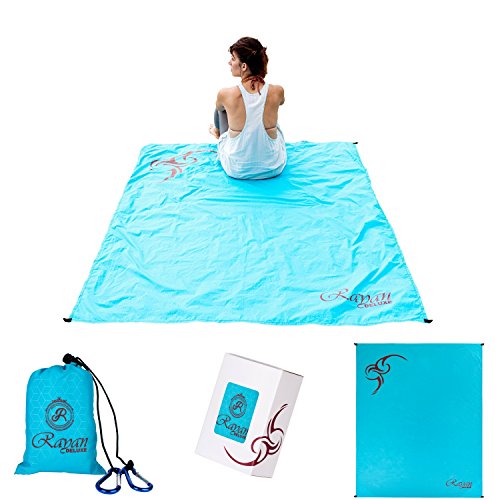 -. Feature : SUITABLE FOR VERSATILE USE: This is a must-have equipment for everyone that loves outdoor activities. This is the perfect beach blanket because it is both water resistant and sand proof. Whether you are hiking, running, swimming, cycling or climbing this useful waterproof pocket blanket will assist you every time you need it. This multi-purpose blanket can offer reliable rain, wind or sun protection and is suitable for picnic, camping or traveling. This is the perfect cruise accessory. / UNIQUE DESIGN IN CONVENIENT DIMENSIONS: The Rayan Deluxe pocket blanket is designed to stand out every time you use it. It features 4 corner sand pockets & loops,a magnificent ocean blue color and an awesome tribal tattoo imprint that will impress your friends! It is available in a convenient size for maximum comfort use with dimensions 70 x 56 inches,enough for an entire family. / PEAK QUALITY FOR EXTENDED DURABILITY: This amazing outdoor blanket is crafted with highest quality material to deliver a resilient product for long lasting use.With 100% nylon fabric, it is puncture resistant, water and sand proof, the ideal beach accessory. Additionally, the special material that is used provides you with an easy to clean,fast to dry and ultra-soft,multi-purpose blanket. / ULTRA-MATCHING ACCESSORIES: Rayan Deluxe outdoor blanket is offered with a practical carry bag for compact, easy storage and convenient transport, plus 2 carabiners, so it can easily be used to create a shelter from any type of weather phenomena. Additionally, you will receive one aluminum survival whistle as a lifesaving tool that can be used for any sport or family game or as a key chain. / THE PERFECT GIFT IDEA: Don't wonder why your friends are jealous of your tattoo imprinted outdoor blanket. Give them a reason to smile and order this 3 in 1 specially designed gift box for them.They will love this thoughtful and multi-purpose present. They will definitely enjoy their next visit at the beach with this durable and waterproof blanket.