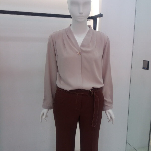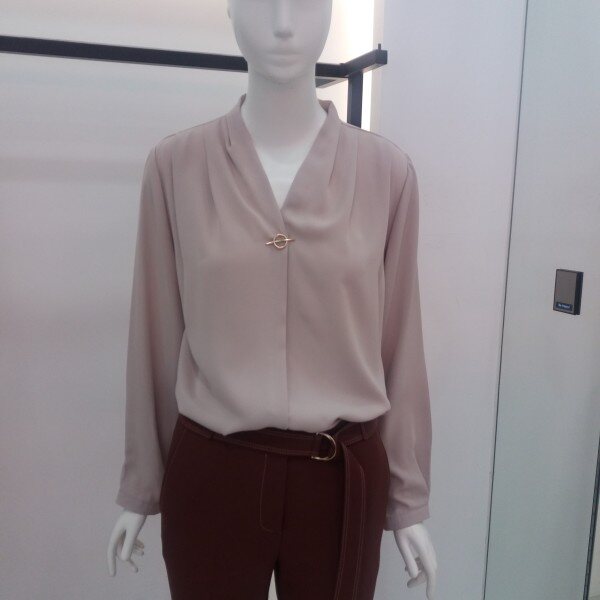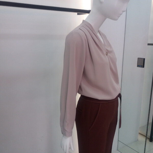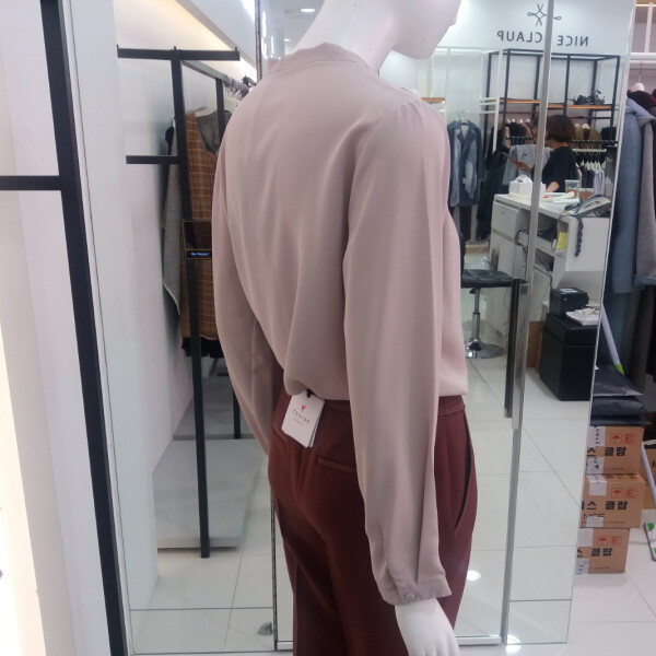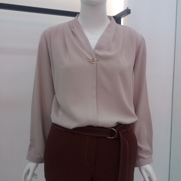 ★상품 설명★ Add NICE CLAUP, 브이로덜어지는 목선에 셔링과 핀장식으로 포인트를준 블라우스입니다
