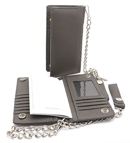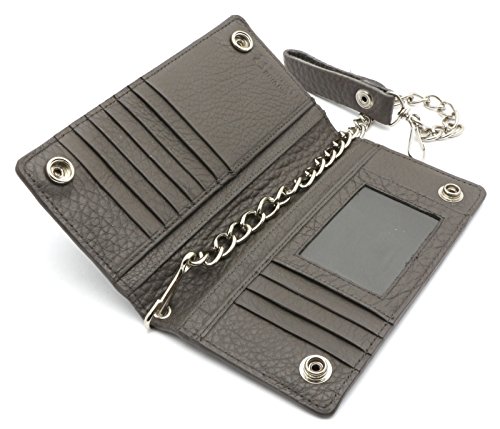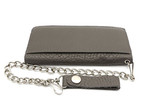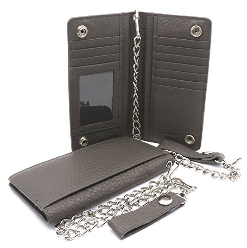 -. Title : Bifold Gray Genuine Leather Checkbook Holder Snap Button Wallet with a Chain
