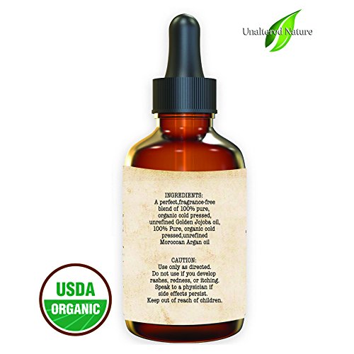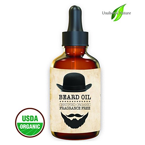 100% Organic Blend of All Natural Ingredients - Premium Beard Oil - Unscented ( Organic Jojoba + Organic Argan ) - Fragrance Free, All Natural
