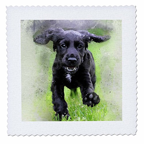 3dRose Running Playful Black Labrador Retriever Puppy Watercolor Quilt Square, 6 x 6"