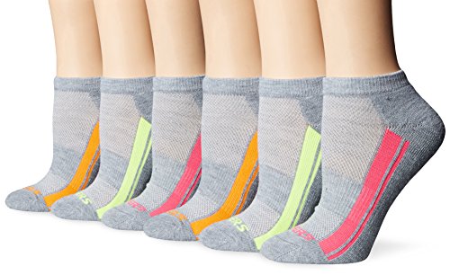 Half-terry, mesh ventilation, arch support, cushioned comfort, knit-in logo at toe, low ankle height ideal for running, walking and fitness training, contrast colored panel designs