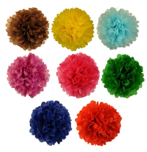 Studio : Just Artifacts Publisher : Just Artifacts Binding : Kitchen Product Description 8 Assorted Tissue Pom Pom Paper Flower Ball 12 inches. Decorate in style with these fluffy tissue poms.?Includes 8 DIFFERENT color tissue poms (the tissue pom colors may not be same as picture) Each tissue pom comes with ribbon, pre-cut, and folded. Simple assembly required.?Dimensions: Approximately 12 inches in diameter when fluffed and bloomed. Actual color selection may vary. 0
