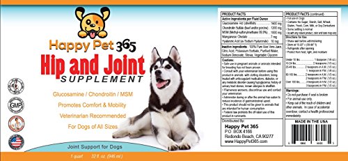 Happy Pet 365 Hip And Joint Supplement for Dogs 32oz - Liquid Glucosamine for Dogs with Chondroitin MSM & Hyaluronic Acid - Arthritis Pain Relief from Hip Dysplasia - Enhances Mobility & Natural Calm