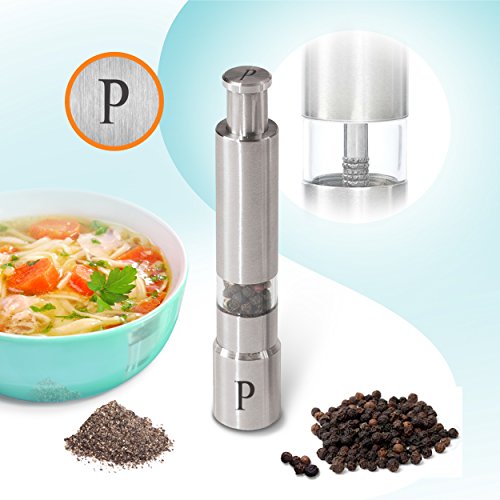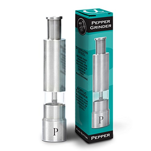 Pepper Grinder: Thumb Push Pump and Grind Pepper Mills by Alpha Armour, Seasoning and Spice Tools, Stainless Steel