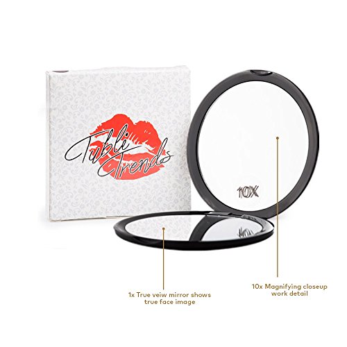 Compact Makeup Mirror - Dual sided Magnifying Mirror with 10X Magnifying and 1X Flat Mirror- Excellent For On the Go- 4" Round Perfect For Purses and...