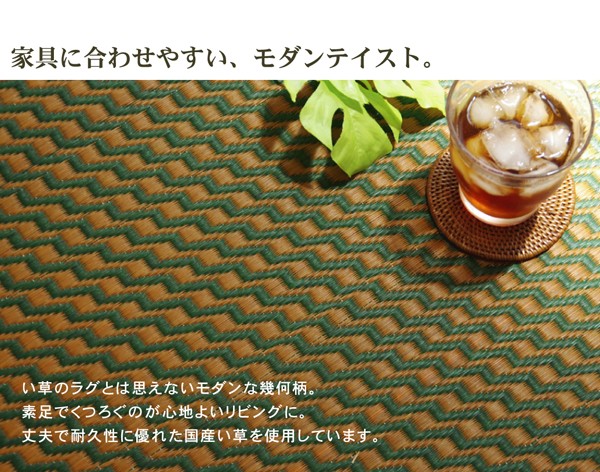 【商品名】純国産 シンプルい草ラグカーペット『Fリブロ』 グリーン 95×130cm
