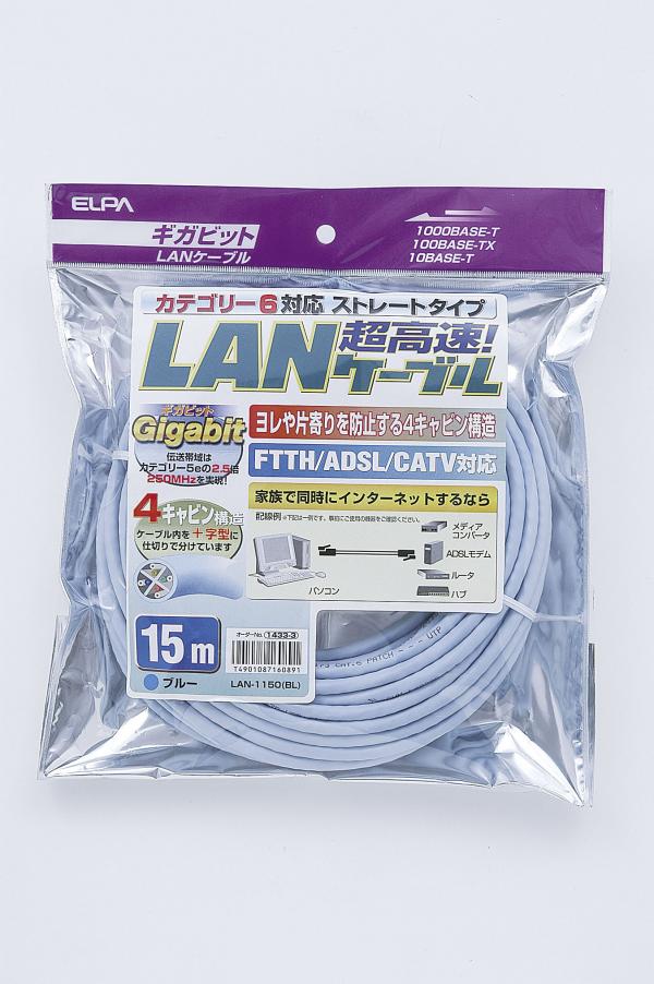 FTTH、ADSL、CATV対応のカテゴリ6対応のストレートタイプのLANケーブルです。