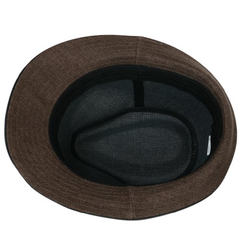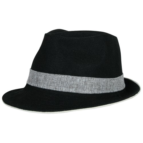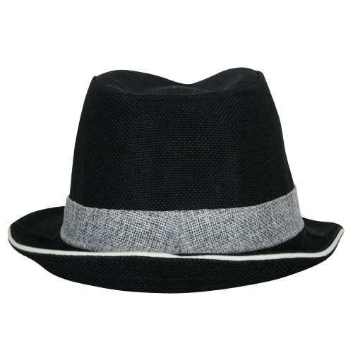 Product Description ililily Linen Solid Color Black Band Fedora Hat Black Trimmed Trilby Cap Medium size 7 1/8 Various 9 colors an available Linen trilby hat Black piping small brim hat Black linen hatband fedora