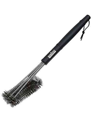 [Product Information]- EFFORTLESS CLEANING: With a unique design, this 18" long barbecue brush has three brushes in one, each with its own equivalent stroke. Be prepared to clean every bit of residue with its innovative 360 degree rotator blade to remove hard corners.