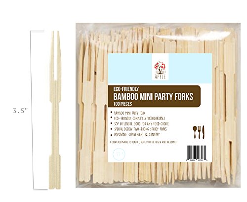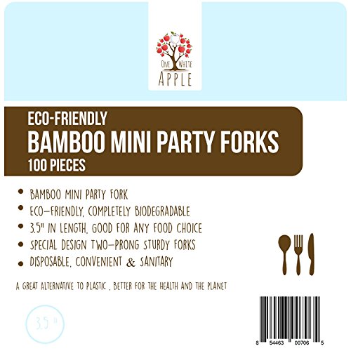 Studio : One White Apple Publisher : One White Apple Product Description p>Better for the environment than plastic, Completely Biodegradable. Eco friendly Bamboo Mini Party Picks Party, Special design Two-Prong Forks: 100 Bamboo Mini Party Buffet Forks Use for: Cocktails appetizers (fruit picks), Hors D'ouevres, Frilled Picks Sandwich, Cake Forks Dessert Forks Measure: 3.5" in Length Material: Made of 100% natural solid birch wood Strong and Sturdy Non Toxic: no plastics or harmful chemicals Utelise for: - Restaurant, Catering or Home settings