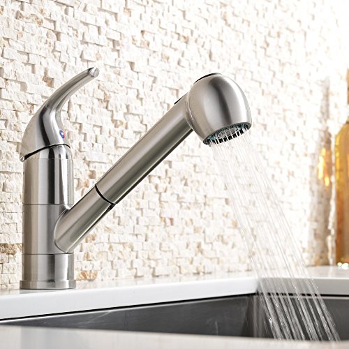 VCCUCINE Best Modern Commercial Brushed Nickel Stainless Steel Single Handle Pull Out Sprayer Bar Kitchen Sink Faucet, Small Pull Down Kitchen Sink Faucet Without Deck Plate