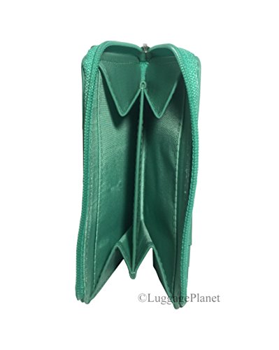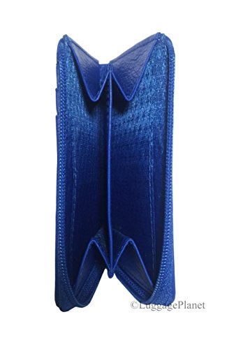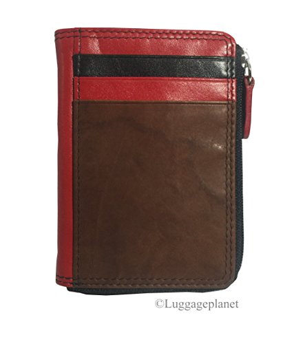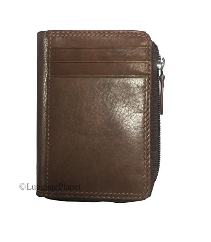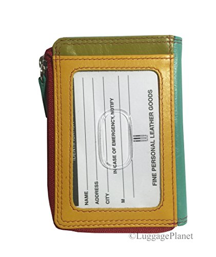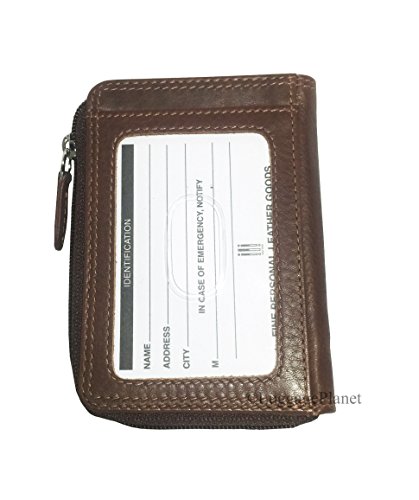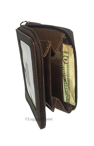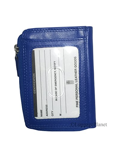 Product Description Genuine Leather RFID Blocking Lining Clear ID window w/ thumb slide 3 credit card slots on exterior plus 2 slots on interior one on each side. (can be used to put cash folded in half holds at least 5 folded bills on each slots) Large divided change section Secure zipper closure Dimensions: 4.25" L x 3" W x .50" D 0