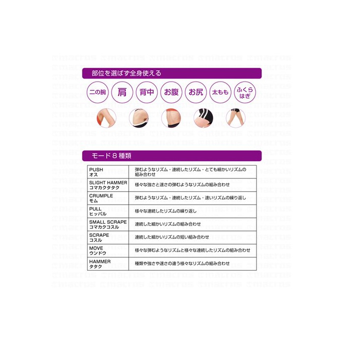 사양:모드/8종류,힘 설정/15단계,시간 설정/5 분10 분15분,언어 표시 교환/일본어 영어