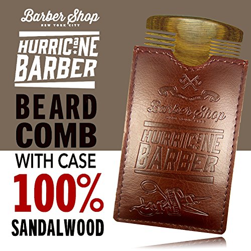 HURRICANE Beard Comb Wood - 100% Sandalwood - Anti-Static Dual-Sided Coarse & Fine Tooth Comb (4" Two sides) w/ Protective Case