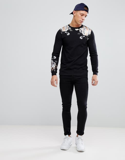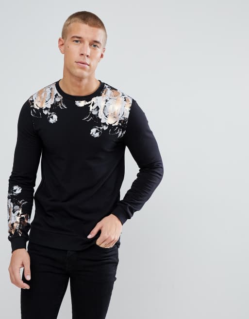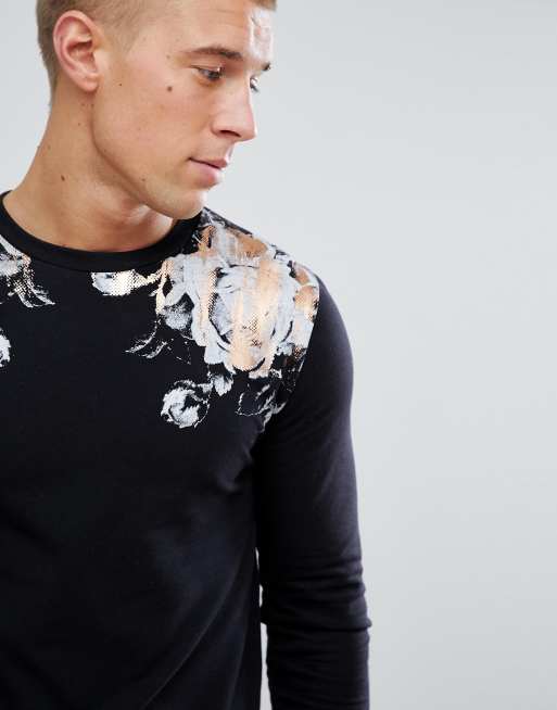 ASOS Muscle Sweatshirt With Rose Foil Print
