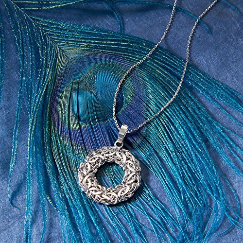 Sterling silver, handcrafted Byzantine open circle pendant necklace for women.