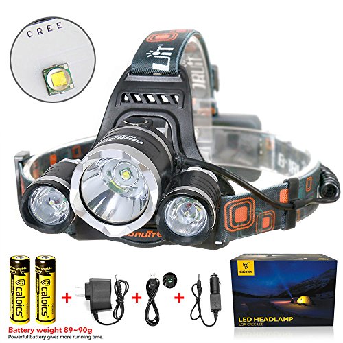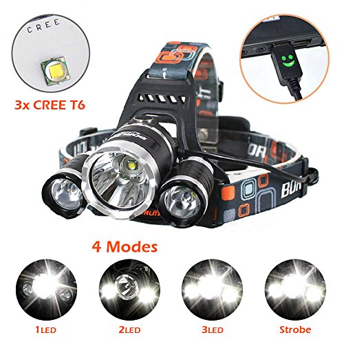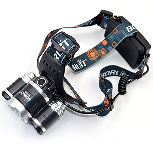 Boruit® Headlamp Headlight 5000 LM with 3*Cree XML T6 LED Super Bright Flashlight for Hunting, Camping, Night Fishing, Running, Reading, Kids, Perfect Hands-free Rechargeable & Waterproof Work Light