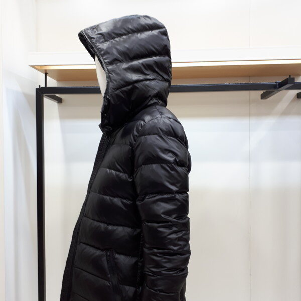 라인이 살짝들어간 경량다운패딩이예요슬림한핏으로 날씬해보이며 원단은 유광처리로 광이나는 블랙입니다모자는 탈부착가능하며 디테일하게 조절할수있어요