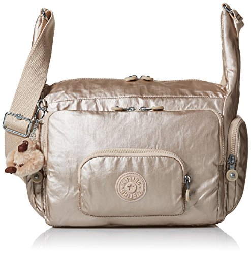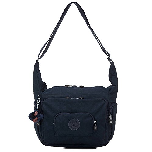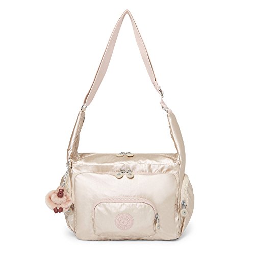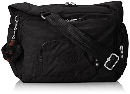 Cross-body bag featuring multiple zip compartments and fuzzy monkey keychain