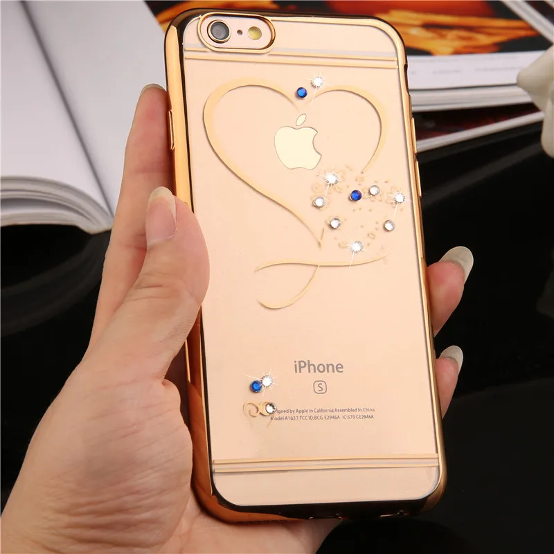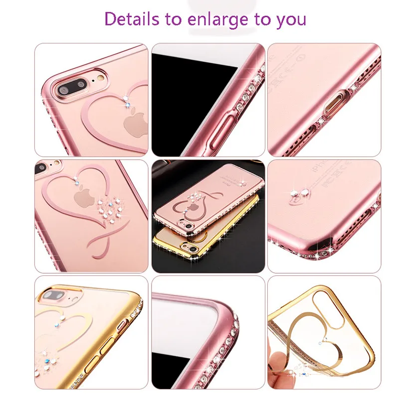 Features:Ultra Thin Clean Soft TPU Rose Gold Plating Glitter Diamond Cover