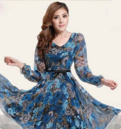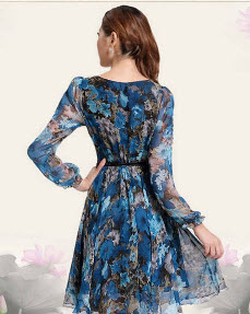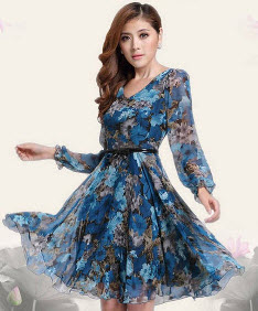 2015 Print Floral V-Neck lengan panjang wanita berpakaian, Kasual elegan gaun pesta sifon 2015 Print Floral V - Neck long sleeve ladies dress , Casual elegance chiffon party dress FAS SJA3247238479 LQM qty000