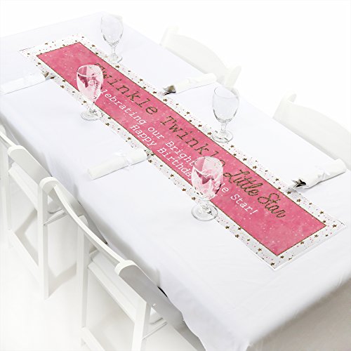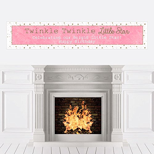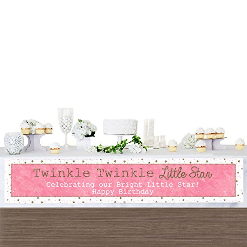 -. Feature : Pink Twinkle Twinkle Little Star Birthday Banner is an impressive birthday decoration for your pink and gold party. / SIZE: Pink Twinkle Twinkle Little Star birthday banner measures 1 foot by 5 feet. / BIRTHDAY DECORATIONS: A Pink Twinkle Twinkle Little Star Birthday Banner is an easy way to decorate for your party and bring your starry theme to life. Hang at the entrance of your birthday, over the food table or candy buffet, at the gift table or behind the dining table. Pink Twinkle Twinkle Little Star Birthday Banners are also great when displayed outdoors to welcome all of your birthday party guests as they arrive. / PREMIUM BIRTHDAY SUPPLIES: Pink Twinkle Twinkle Little Star Birthday Banner is professionally P.R.Inted on premium-grade satin paper with a photo-like shine. Each banner is individually inspected then carefully packaged by hand and rolled into a protective sleeve. All birthday banners INCLUDE non-marking adhesive wall mounts for easy display. / MADE IN THE USA: Pink Twinkle Twinkle Little Star - Birthday Decorations Party Banner is designed and manufactured at our Wisconsin facility using materials that are Made in the USA. Pink Twinkle Twinkle Little Star Birthday Banners use a No-Mess Glitter P.R.Int: Our banners are designed with a P.R.Inted image of glitter, eliminating glitter flake while maximizing bling effect!