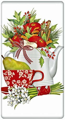 Christmas Fruit Teapot 100% Cotton Flour Sack Dish Tea Towel - Mary Lake Thompson 30" x 30"