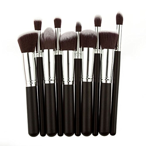 BeautyCoco Professional 10 Piece Makeup Brush Set (Silver Black)