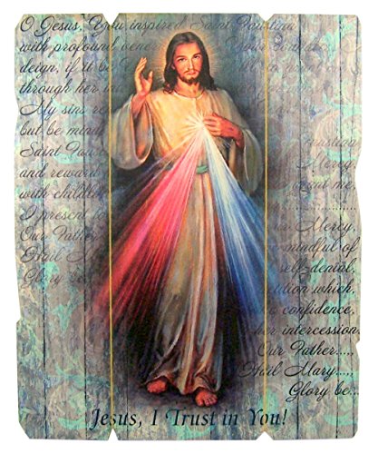 Laser Cut Wood Divine Mercy Icon Wall Plaque, 9 1/4 Inch