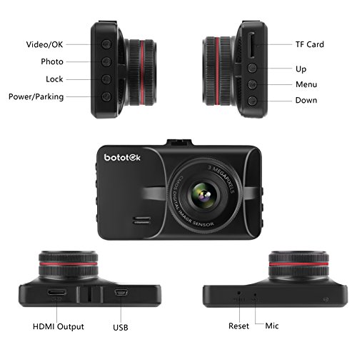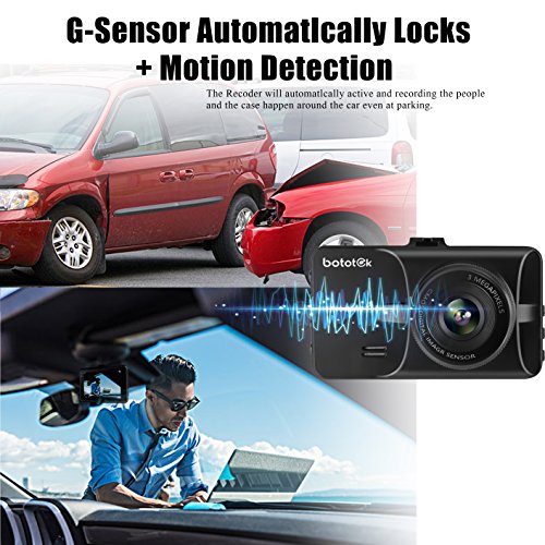 Full HD 1080P Dashboard Camera, Bototek 3 inch LCD display On Loop Recording DVR Vehicle G-Sensor Parking Monitor