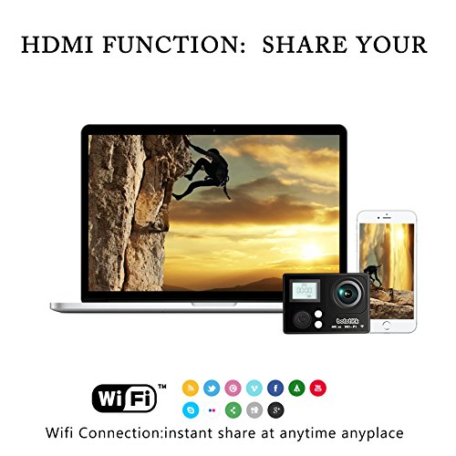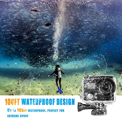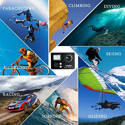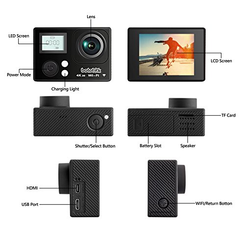 Bototek HD Action Camera 4K Waterproof SONY Sensor 16MP Sports Diving Cam with 2 inch LCD Screen, Built-in Wi-Fi, 170 Degree Wide Angle, and Free Travel Bag Included 20 Accessories Kits-Black
