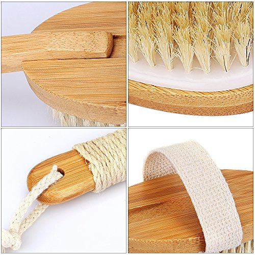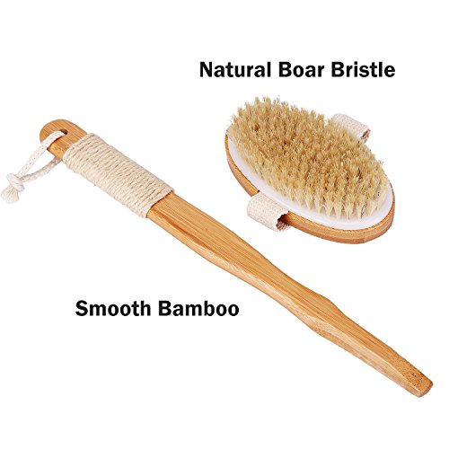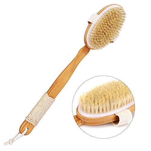 HOMEIDEAS Drying Skin Body Bath Brush Shower Back Brushing Dry Remove Dead Skin 100% Natural Boar Bristle with 15.4 Inch Long Removable Wooden...