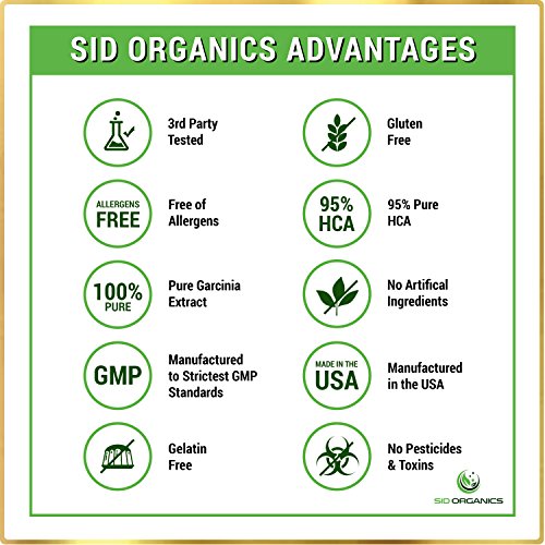 THIS 100% SAFE NATURAL SUPPLEMENT is prepared in FDA CERTIFIED facility and meets GMP STANDARDS. SID ORGANICS GARCINIA CAMBOGIA is GLUTEN & GELATIN FREE, VEGETARIAN formula and contains NO ARTIFICIAL INGREDIENTS & PRESERVATIVES.