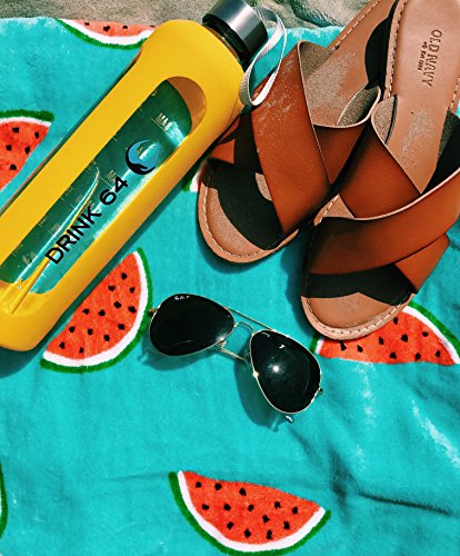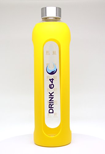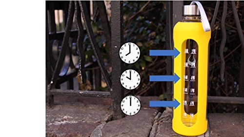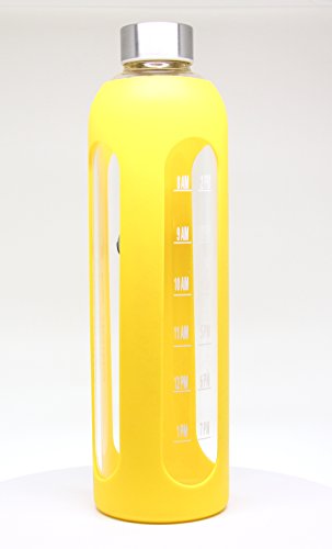 32 Oz Glass Water Bottle Time Marked Reusable Eco Friendly With Silicone Sleeve: BPA Free. Paleo, Whole 30 and Vegan Recommended