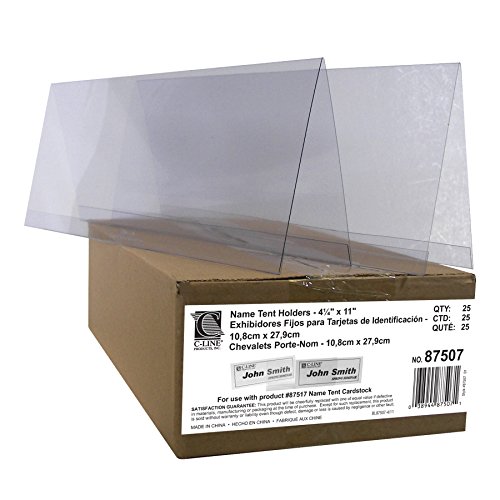 C-Line Large Rigid Plastic Name Tent Card Holder, Clear, Heavyweight , 4.25 x 11 Inches, 25-Count (87507)