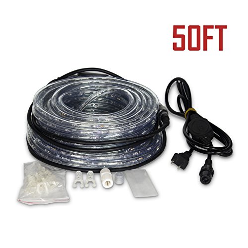 WALCUT Flexible 50FT Crystal Clear PVC Tubing LED Rope Light Indoor/Outdoor Boat Decorative Party Christmas Holiday Business Restaurant Light Kit 110V (Cool White)