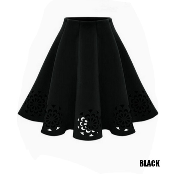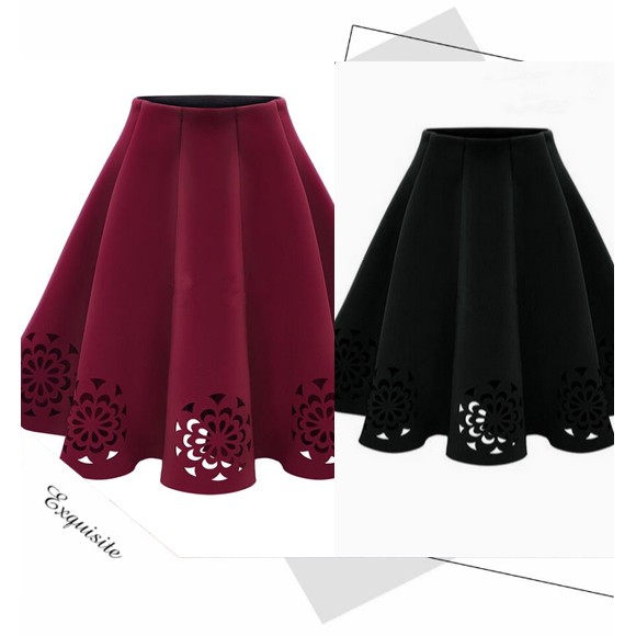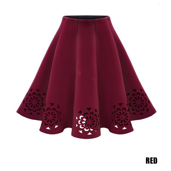 裾を花模様にカッティングしたスカートです♪ふんわり広がるレディライクなスカートで気分もあがります☆スウェード調の素材で秋冬におススメのスカートです☆【サイズ詳細】ウエスト:約60-80cm ヒップ:約128cm 総丈:約62cm素材:ポリエステル
