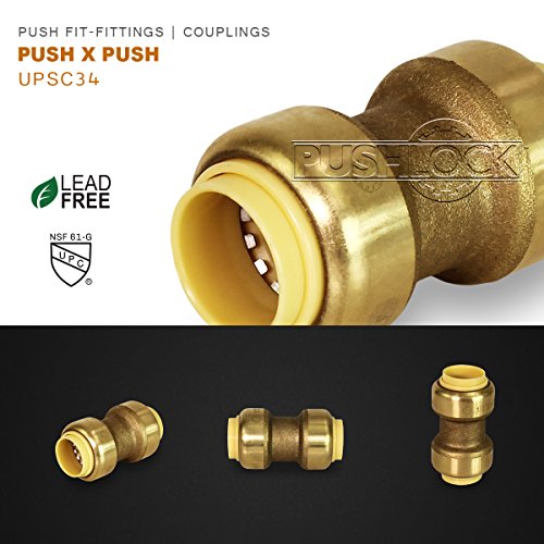 Everflow Pushlock UPSC34 3/4 Inch Long Push X Push Coupling for Push-Fit Fittings, Made with Lead Free DZR Forged Brass, Connects PEX, CPVC and Copper, Pre-Lubricated for Quick Installation