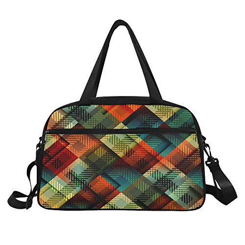 (InterestPrint)/Accessories/Luggage, Bags Travel/DIRECT FROM USA/InterestPrint Travel Duffel Tote Bag with Shoes Compartment for Women Men Diagonal Plaid
