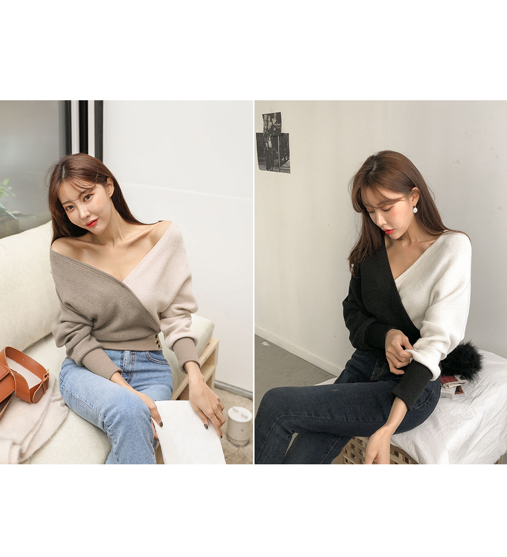 딥한 V네크라인이 쇄골라인을 돋보이게 해주면서