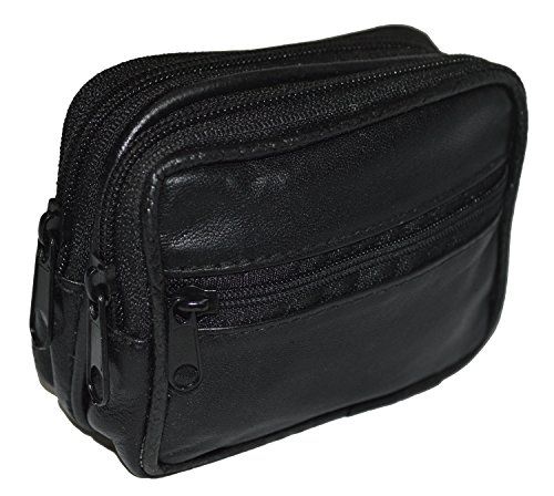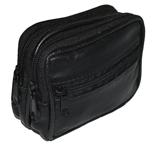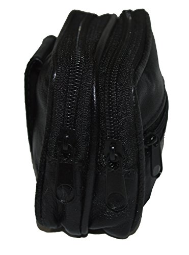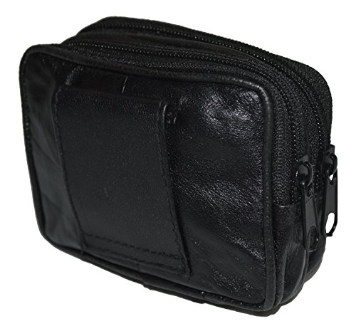 -. Binding : Apparel -. Brand : LeatherBoss -. Color : Black -. Department : unisex-adult -. Feature : Made of Genuine High Quality Leather / 3 Zipper Pockets / Can Hold Coins, Folded Money, Credit cards, etc. / Can be used as a coing purse as well / Measures 4" x 3" -. PackageQuantity : 1 -. ProductGroup : Apparel -. ProductTypeName : BAG -. Size : 4" x 3" -. Title : Leatherboss Belt Pouch with Zipper Pockets - Black