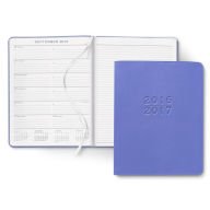 -. Feature : 2017 Monthly Large Periwinkle Cambridge Planner 7.40(w) x 9.40(h) x 0.50(d) / Synthetic leather soft cover with round corners, embossed with the year. / Satin ribbon page marker 96 pages / Smyth-sewn and glued for added durability / Hand crafted in USA