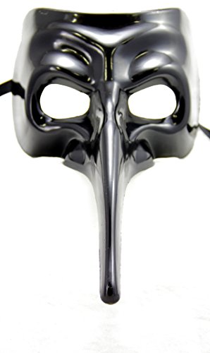 -. Brand : Bauer Pacific -. ClothingSize : One Size -. Color : Black -. Department : mens -. Feature : Long nose mask with black base and glossy finish / Secures with 2 black ribbon ties / Made out of sturdy plastic -. Model : 14786 -. ProductGroup : Apparel -. ProductTypeName : ADULT_COSTUME -. Size : One Size -. Title : Bauer Pacific Men's Shiney Casanova Long Nose Masquerade Mask -. UPC : 690155147868