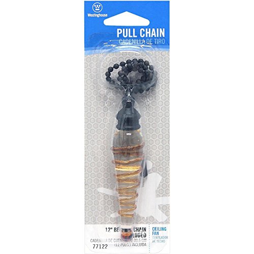 Add a fun accent to a fan or lighting fixture with this Westinghouse Yellow Spiral Glass Pull Chain. It features a tapered, oblong glass handle with a swirling yellow pattern for an artsy, eye-catching look. The handle fixes to a 12-inch beaded chain. It makes an ideal replacement for broken or outdated pull chains. Westinghouse is a global brand with a simple philosophy: make life easier for everyone who buys its products. The company offers ceiling fans, lighting fixtures, lighting hardware, ceiling fan accessories, and light bulbs for both consumer and commercial applications. Westinghouse products are designed for exceptional quality, reliability, and functionality. Product reference number 77122.Feature