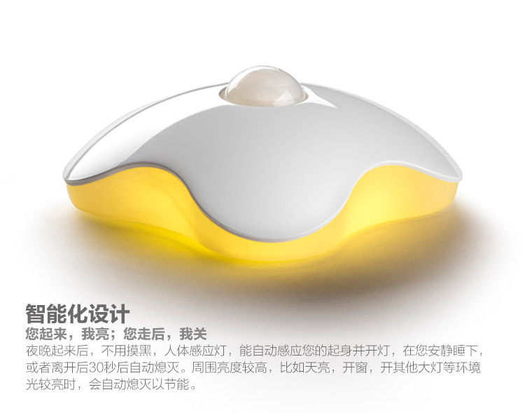 2?)人体感应功能:红外线感应,在黑暗的地方 ,有人出现在2米范围内就会亮。