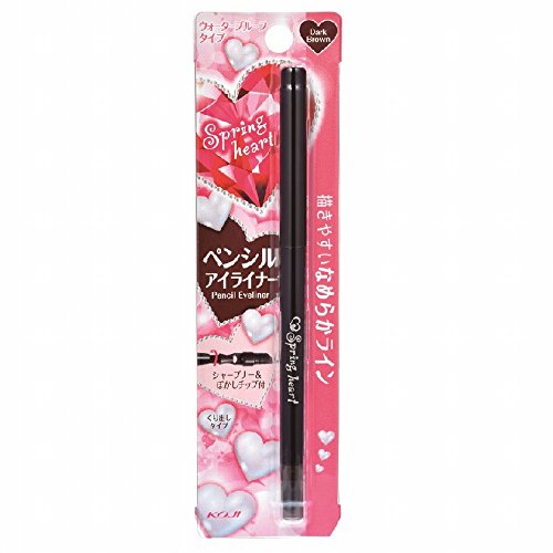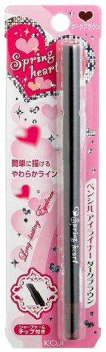 Koji Spring Heart Long Lasting Pencil Eyeliner (Dark Brown) is a pencil type eyeliner that is easy for first-time user to draw a perfect eyeline!!! The pencil is created in a soft lid which does not hurt your eyelids while drawing the lines and it can be applied easily and smoothly This eyeliner is water proof type, which it can protect your eyeliner from swet, sebum, and other reason that causes smudge. In addition, this product comes with a Chip to create smudgy (smoky) eyes, as well as a special sharpener for this eyeliner.