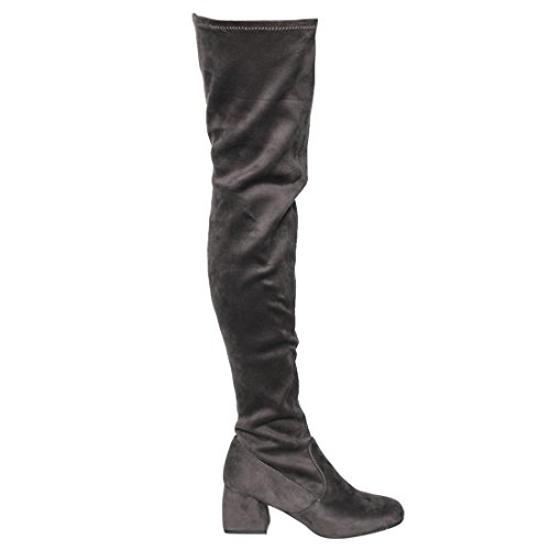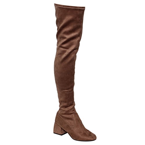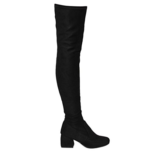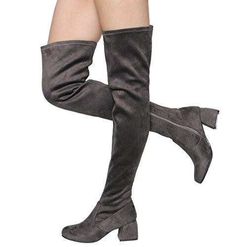 Product Description The thigh high boots bring style to your casual days. Finish with half inner zipper closure for easy entry, stretchy snug fit design, vegan smooth upper, lightly cushioned footbed and wrapper block med heel. 0